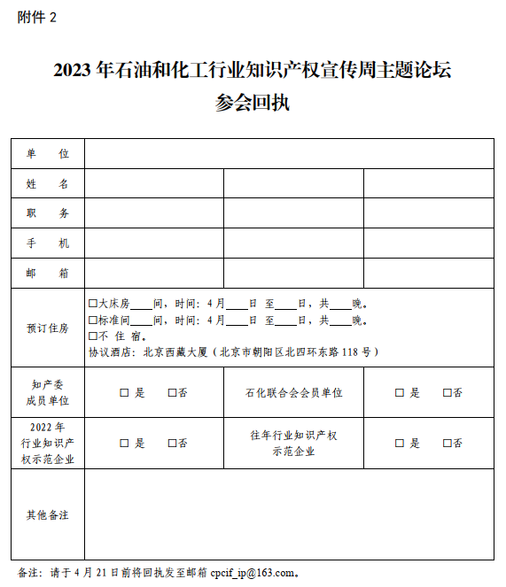 2、4月21日前填写回执发送到邮箱cpcif_ip@163.com。