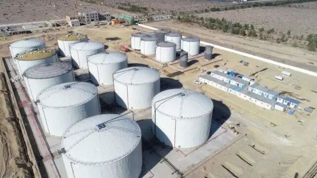 由哈密金运能源科技有限公司投资建设年产30万吨煤焦油深加工项目已完成主罐区建设工作。(融媒体中心记者郭子毅摄)