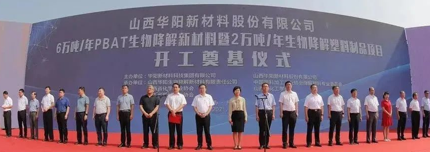 2021年8月10日,山西华阳新材料股份有限公司6万吨/年PBAT生物降解新材料暨2万吨/年生物降解塑料制品项目,在山西平定开工奠基。