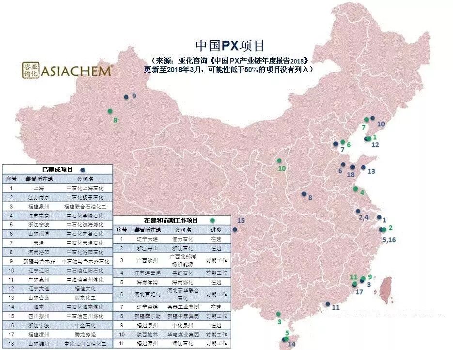 2018年中国PX项目汇总表