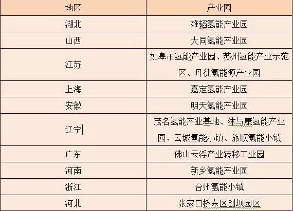 全国各省市氢能产业园汇总