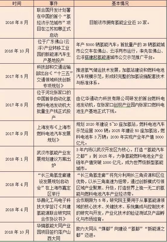 “十三五”国内氢能产业的布局及发展情况