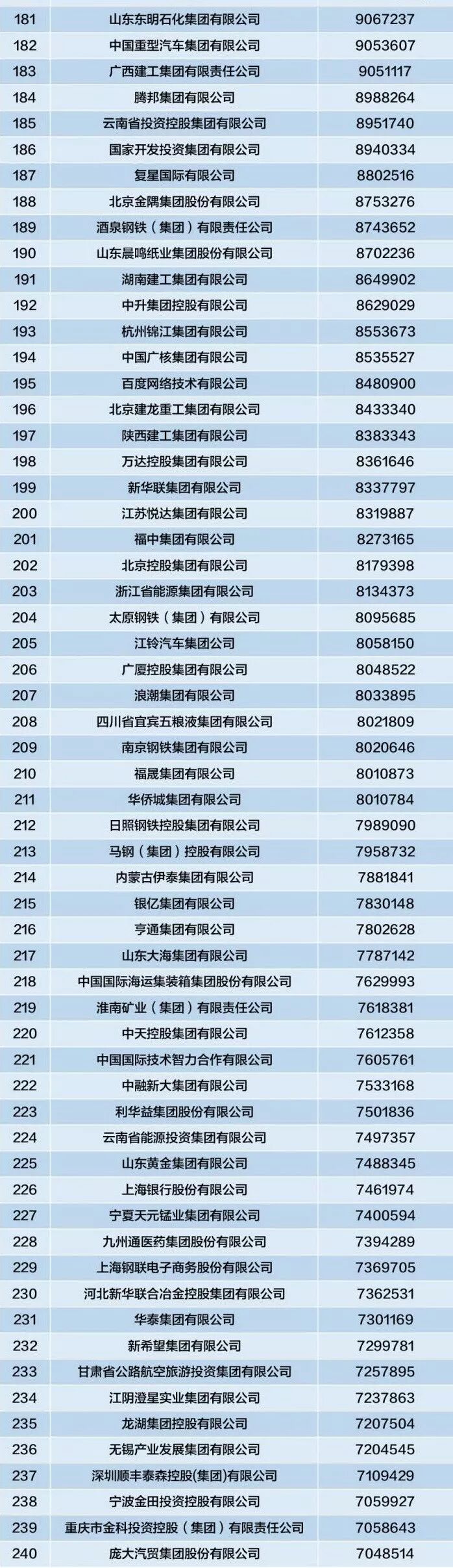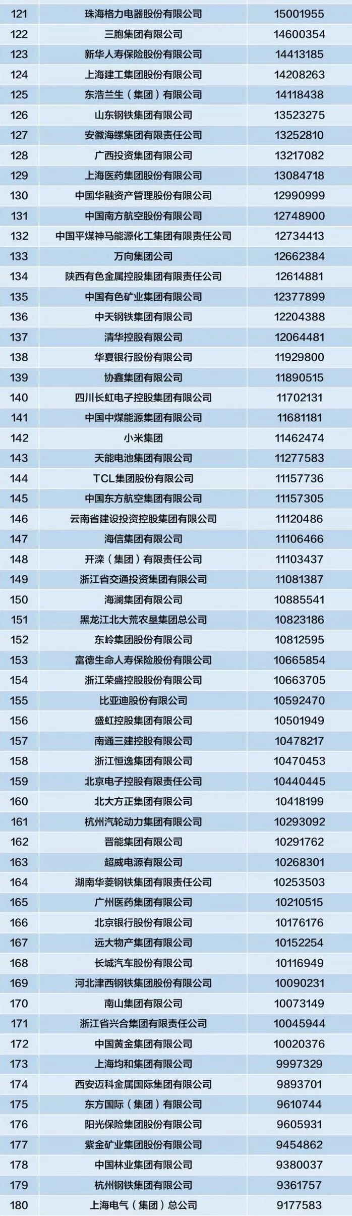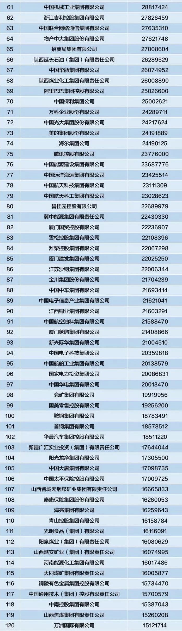营业收入超过1000亿元的企业数量为172家,比上年的157家大幅增加了15家,增加企业数量为近几年来的新高。还有5家营业收入超过万亿元的超大型企业集团。
