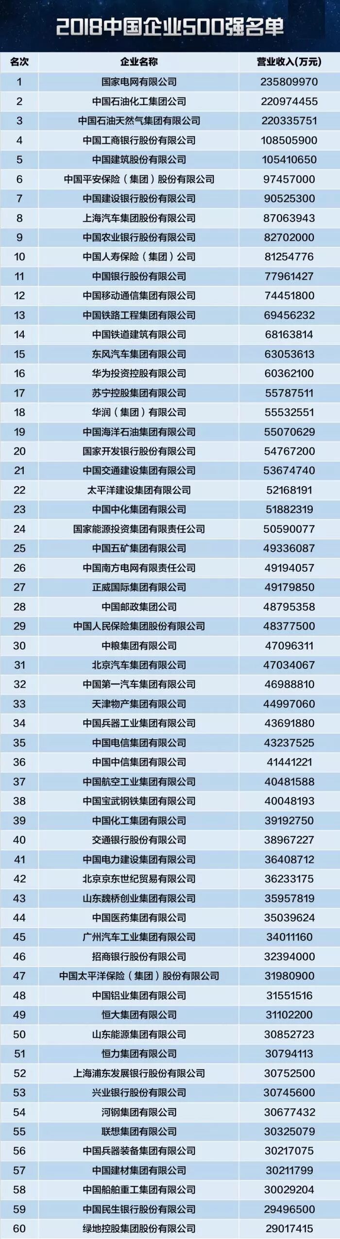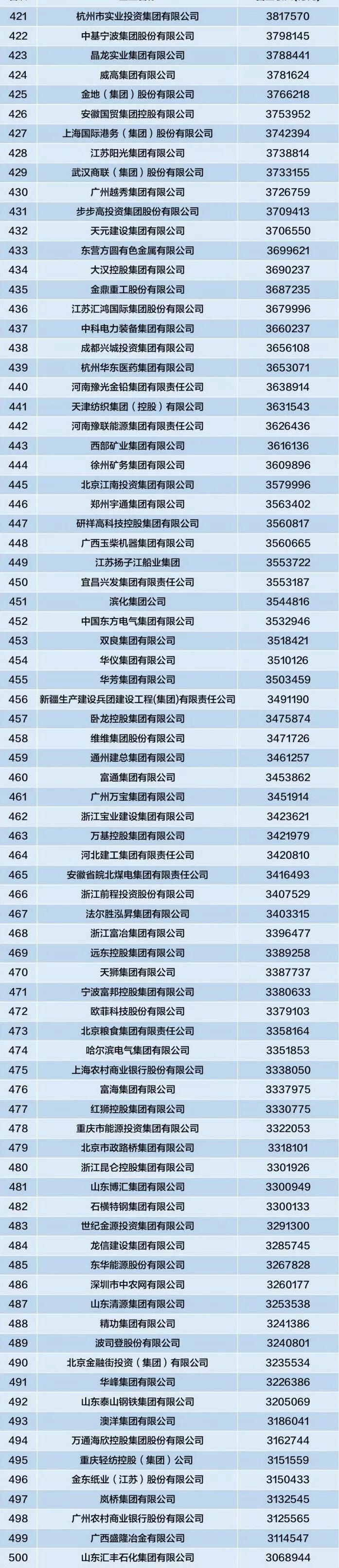 9月2日,由中国企业联合会、中国企业家协会连续第17次向社会公开发布的“中国企业500强”排行榜在西安揭晓。国家电网有限公司以2.4万亿营收位列榜首,中国石油化工集团公司、中国石油天然气集团有限公司分别以2.21万亿及2.20万亿营收居于第二、第三名。