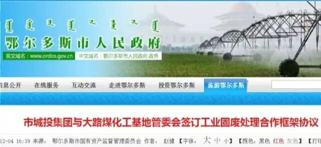 11月30日,市城投集团与大路煤化工基地管委会在康巴什举行工业固废处理合作框架协议签约仪式,共同签订了总投资约21亿元的工业固废处理合作框架协议,合作期限为17年,项目主要涉及Ⅰ类、Ⅱ类工业废渣及高铝灰渣等填埋处理和资源化利用。