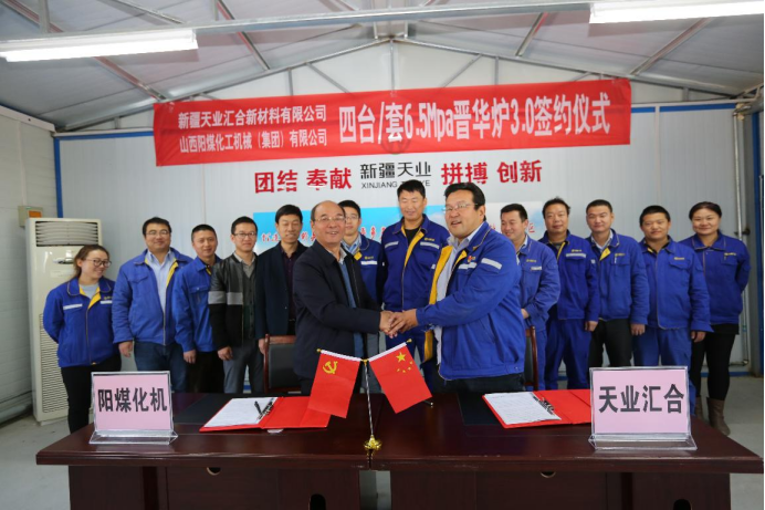 图为新疆天业与潞安化机签订4台晋华炉3.0采购合同