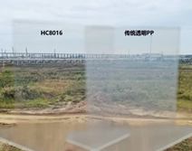 HC8016聚丙烯透明料与传统透明聚丙烯的雾度对比,图片来源:东明石化