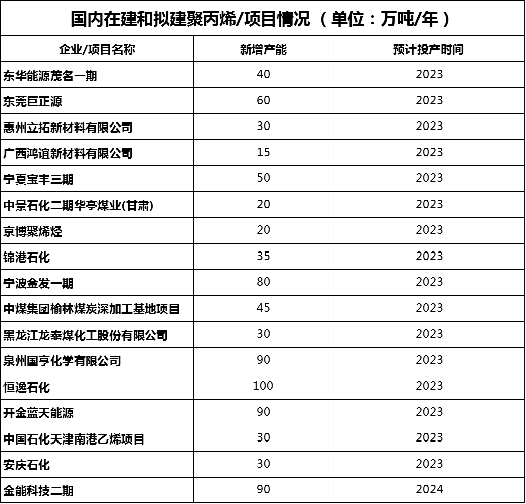 2023年已步入尾声,我们整理了近12个月以来,PP行业相关扩产、新投产等市场信息,供大家参考。