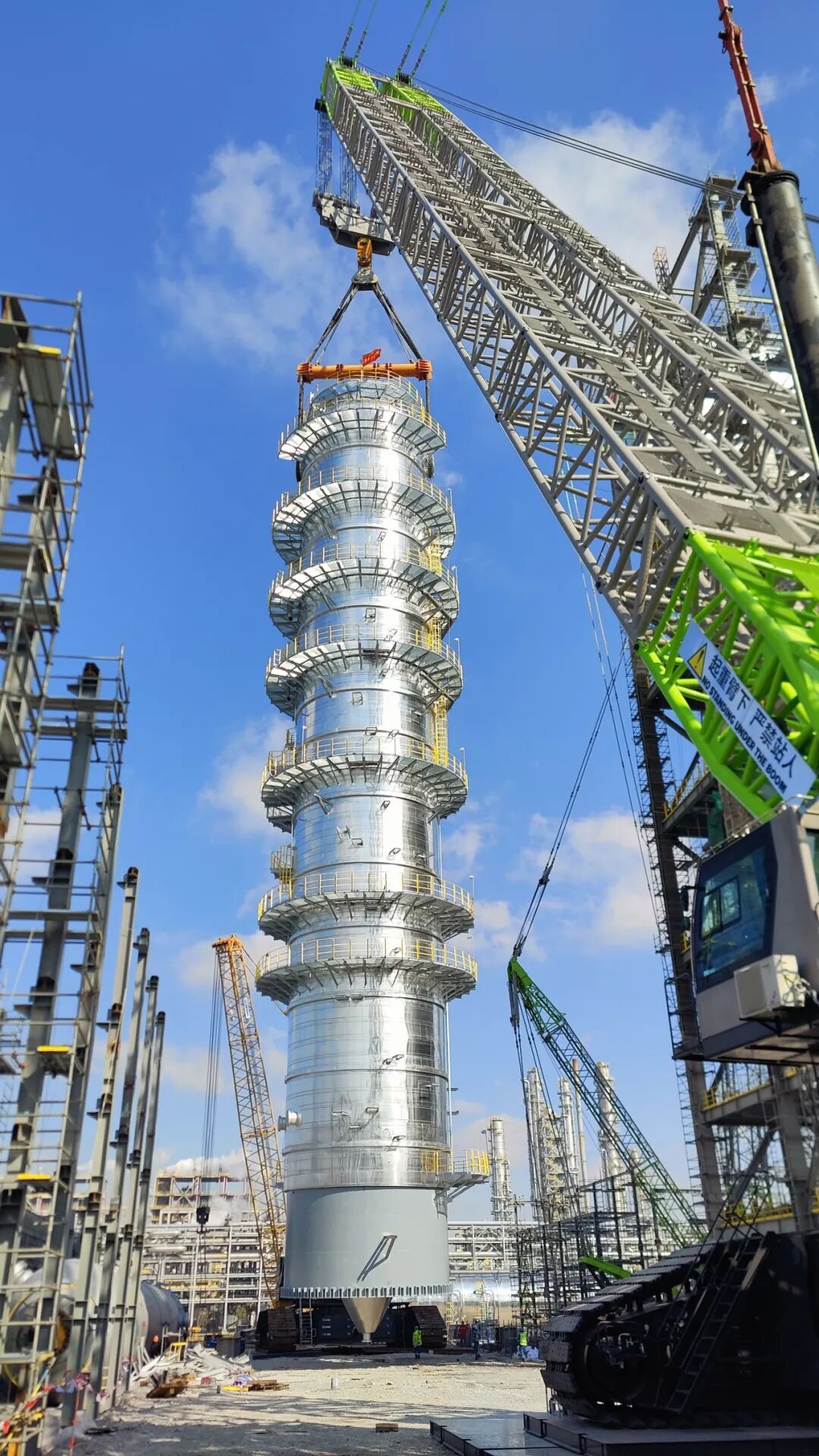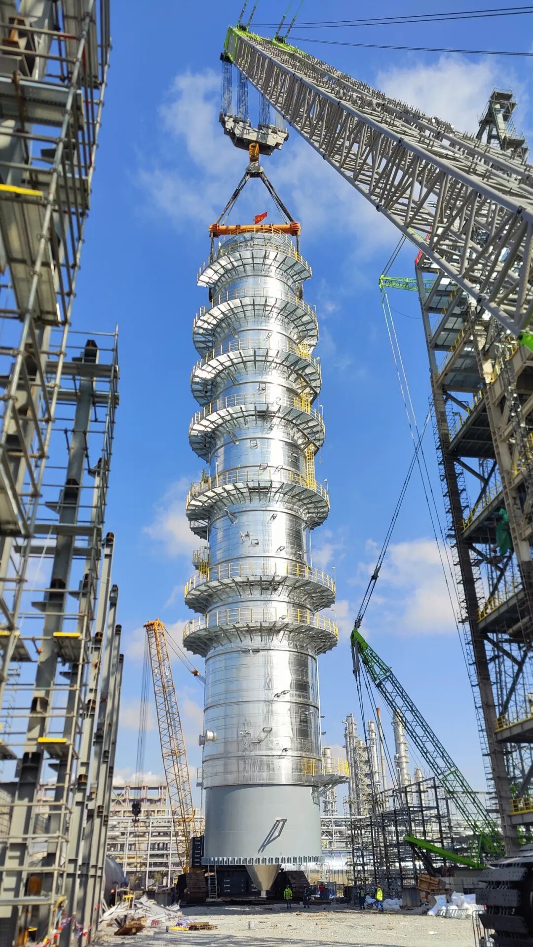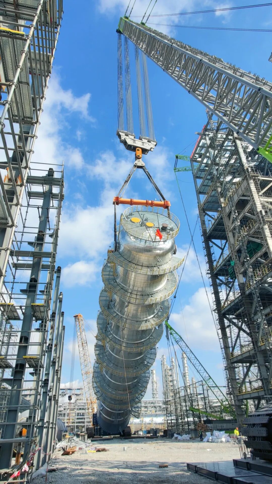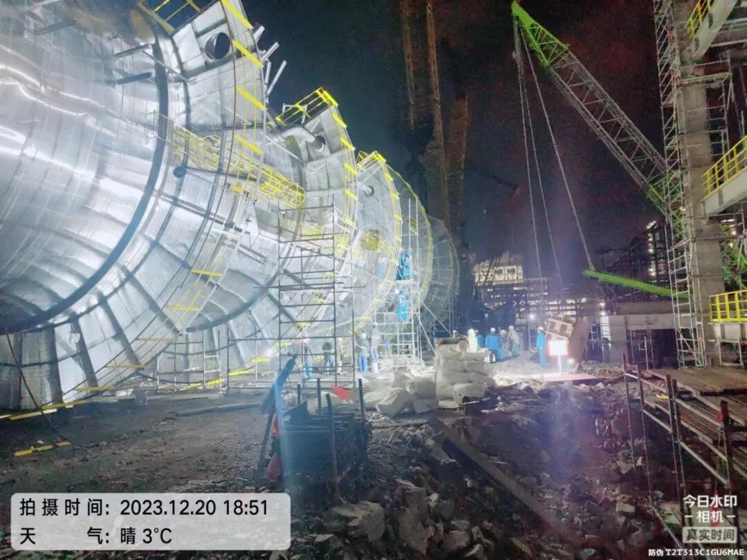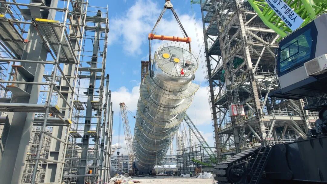 2023年12月22日,浙江石化二期工程项目部3#浆态床渣油加氢装置首台减压塔吊装成功,标志着3#浆态床核心设备吊装工作正式开始。