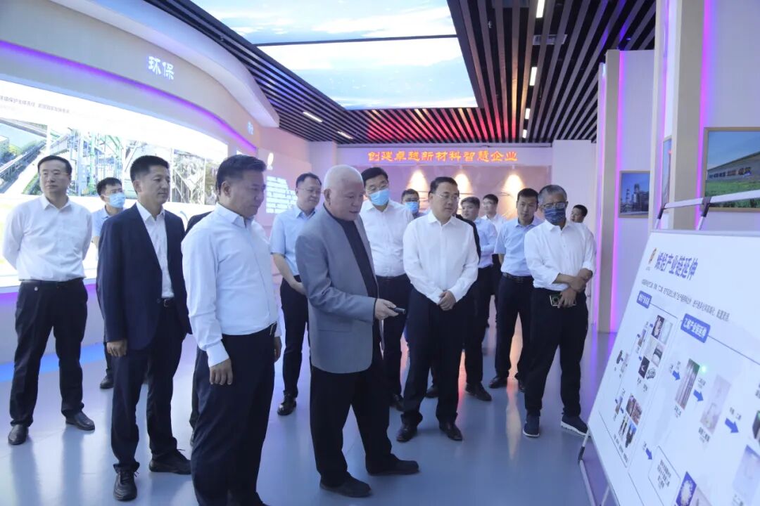 仪式结束后,参加开工仪式的领导先后到公司文化展厅、检测中心、聚合物包装流水线进行了实地参观。崔连国董事长结合展厅展板、实验室设备、包装流水线等,详细介绍了集团产业链规划、智能工厂建设、研发能力、市场前景等。