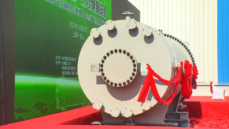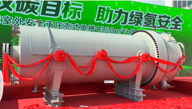 2021年12月26日,国际首套安全承压壳式单槽1350m³/h电解槽在上海亮相。