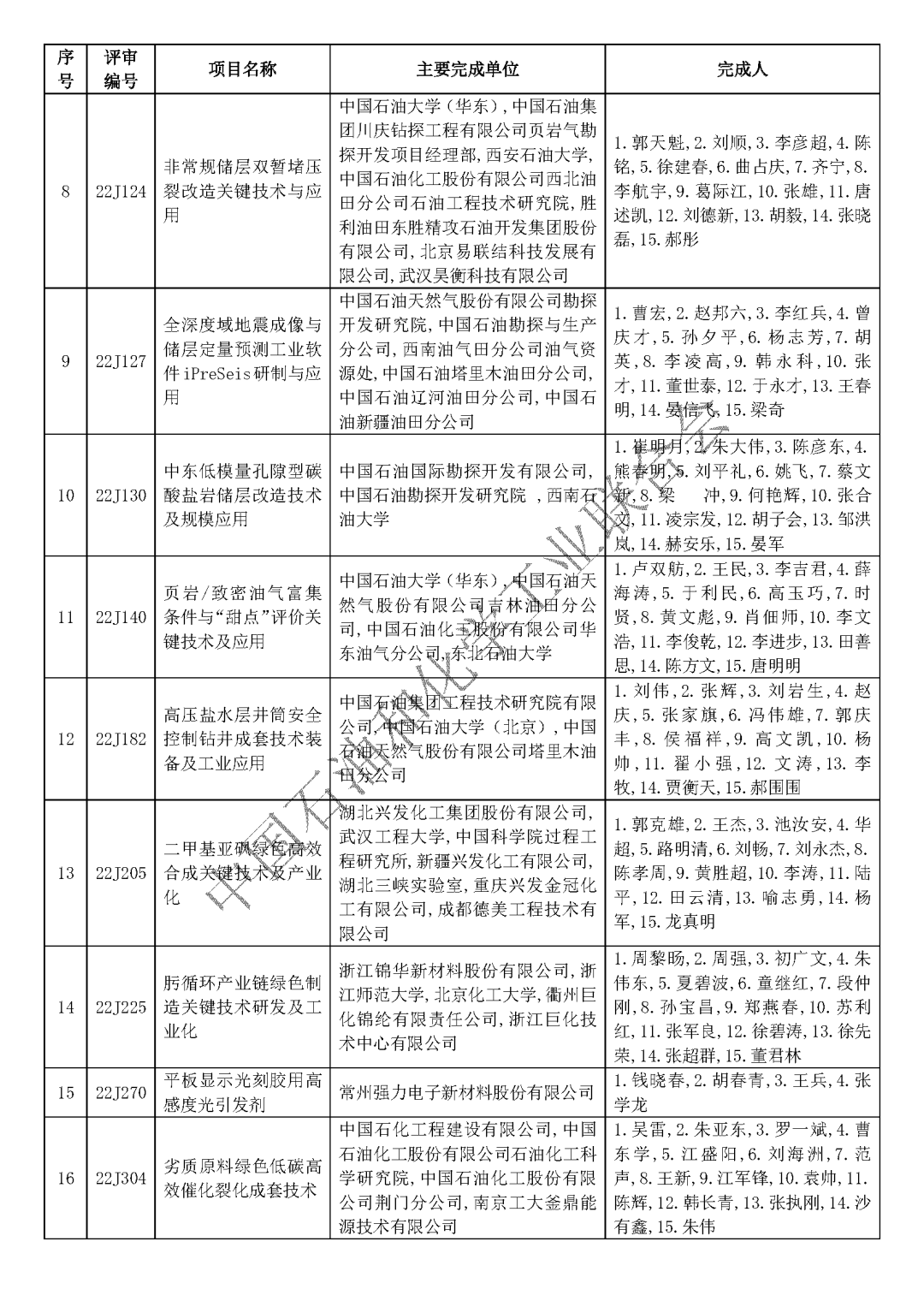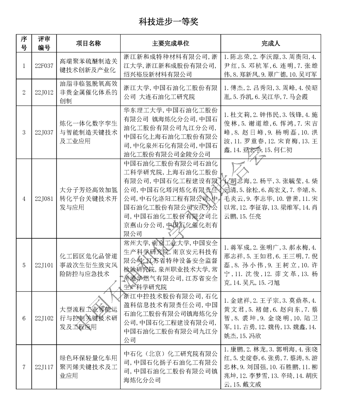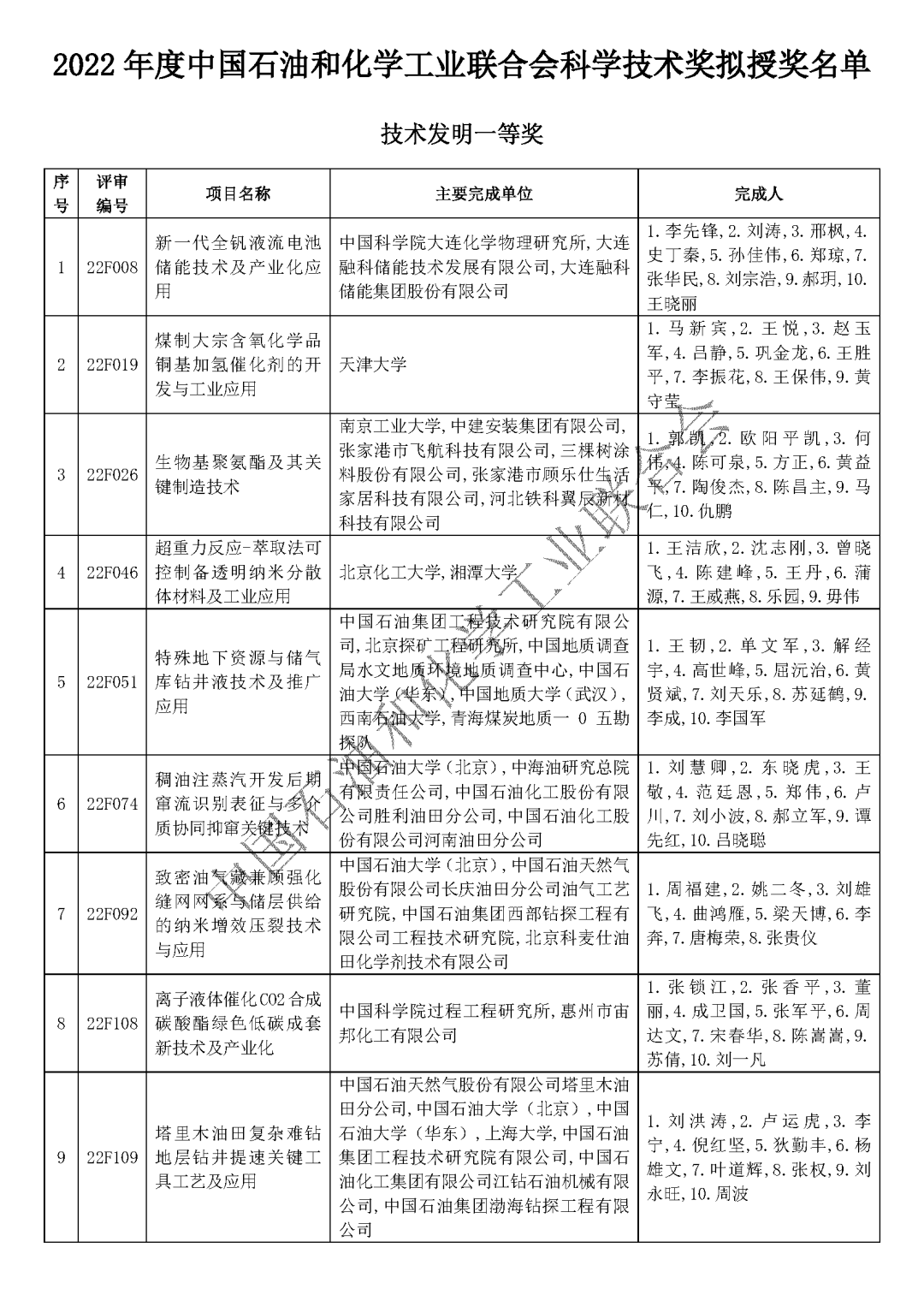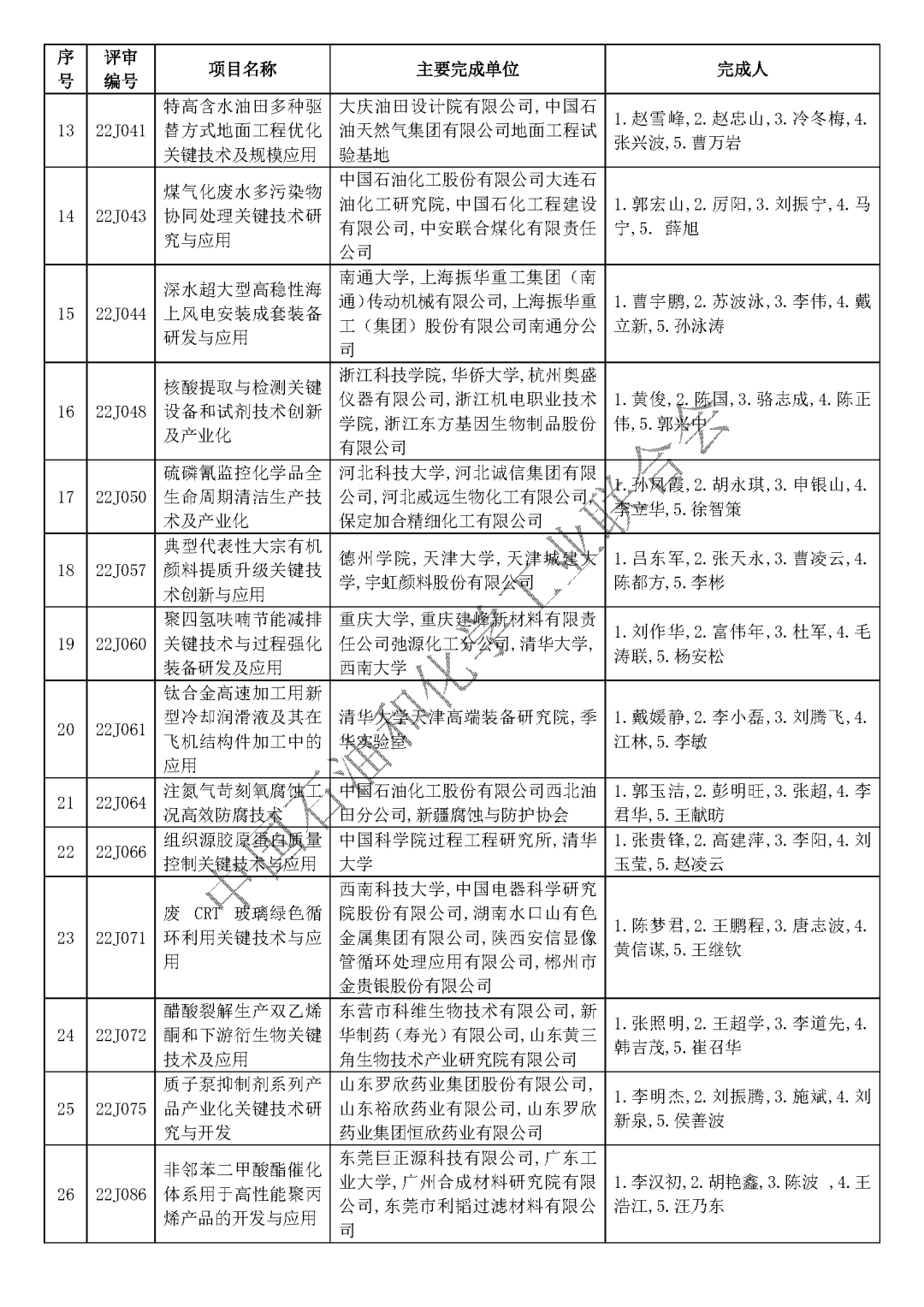 附件:2022年度中国石油和化学工业联合会科学技术奖及行业专利奖拟授奖名单