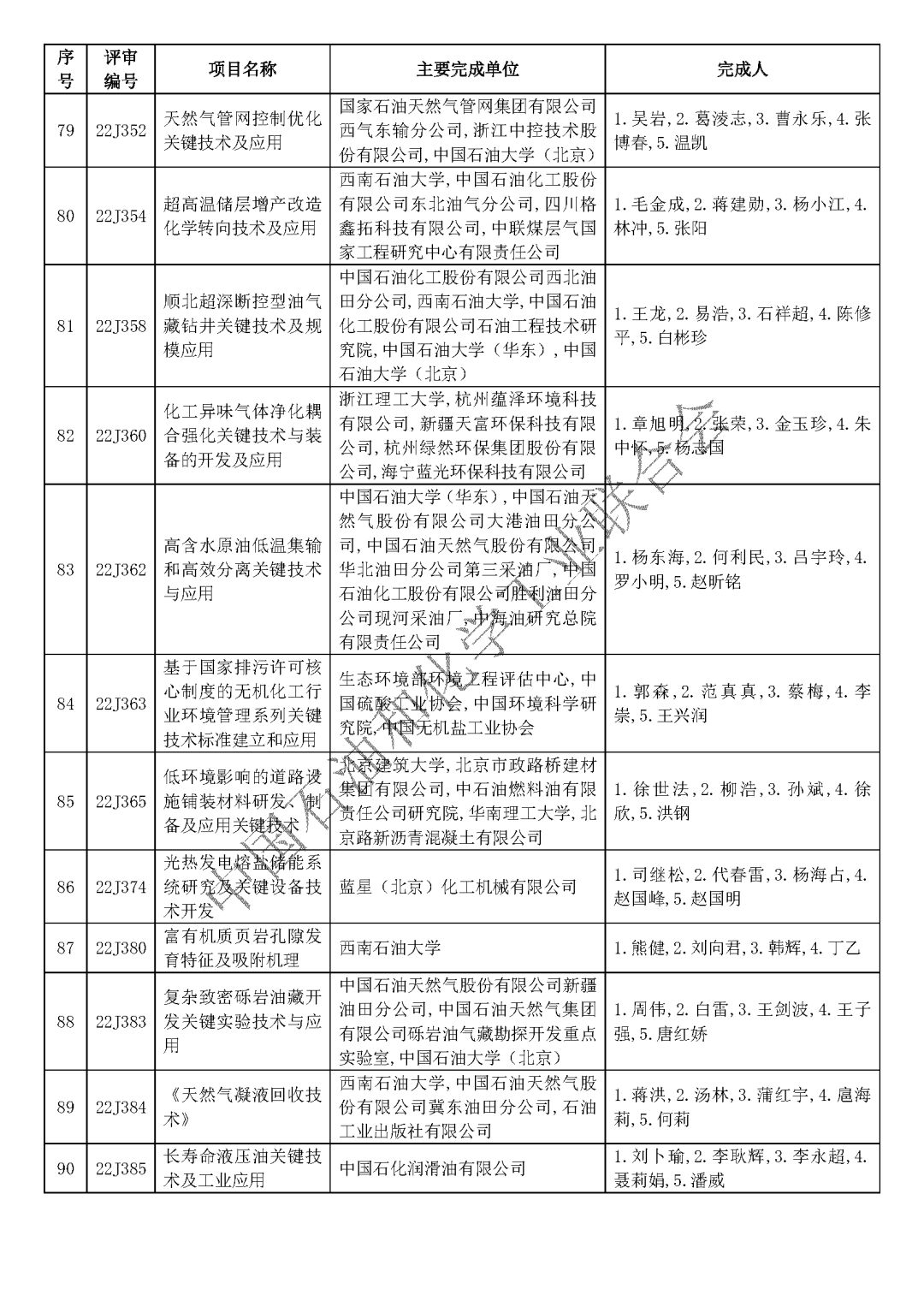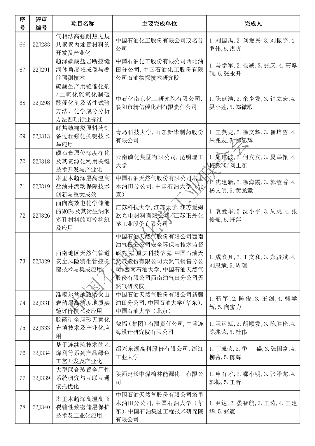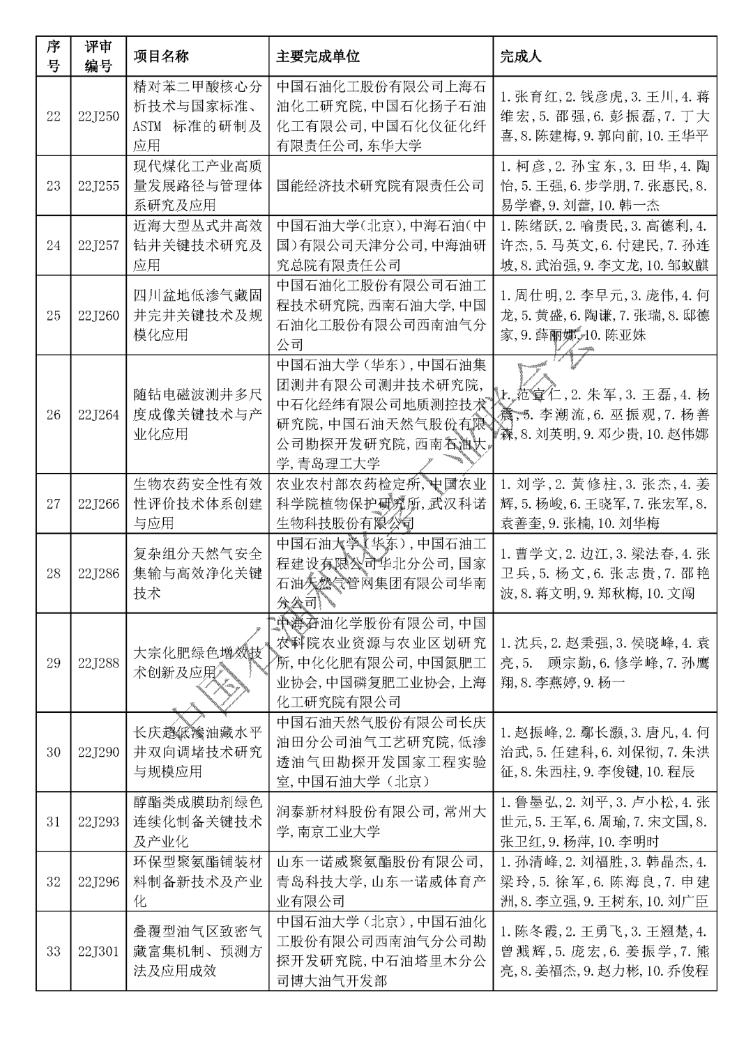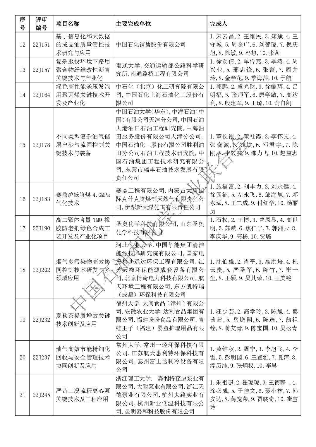 附件:2022年度中国石油和化学工业联合会科学技术奖及行业专利奖拟授奖名单