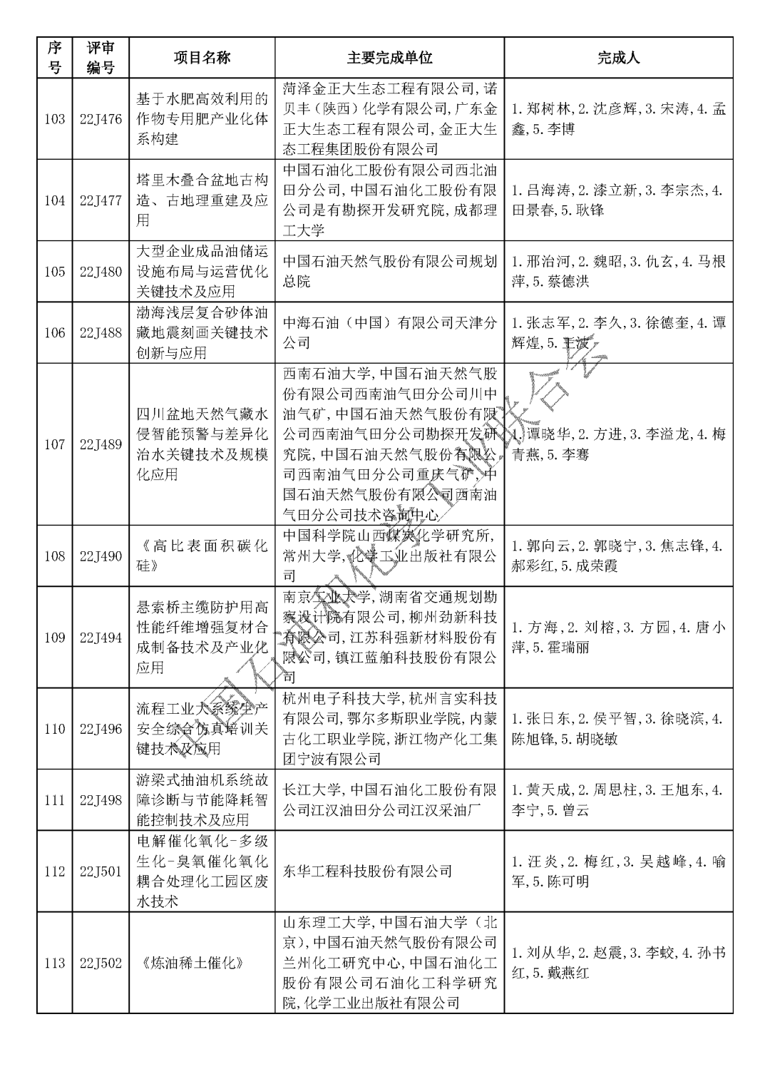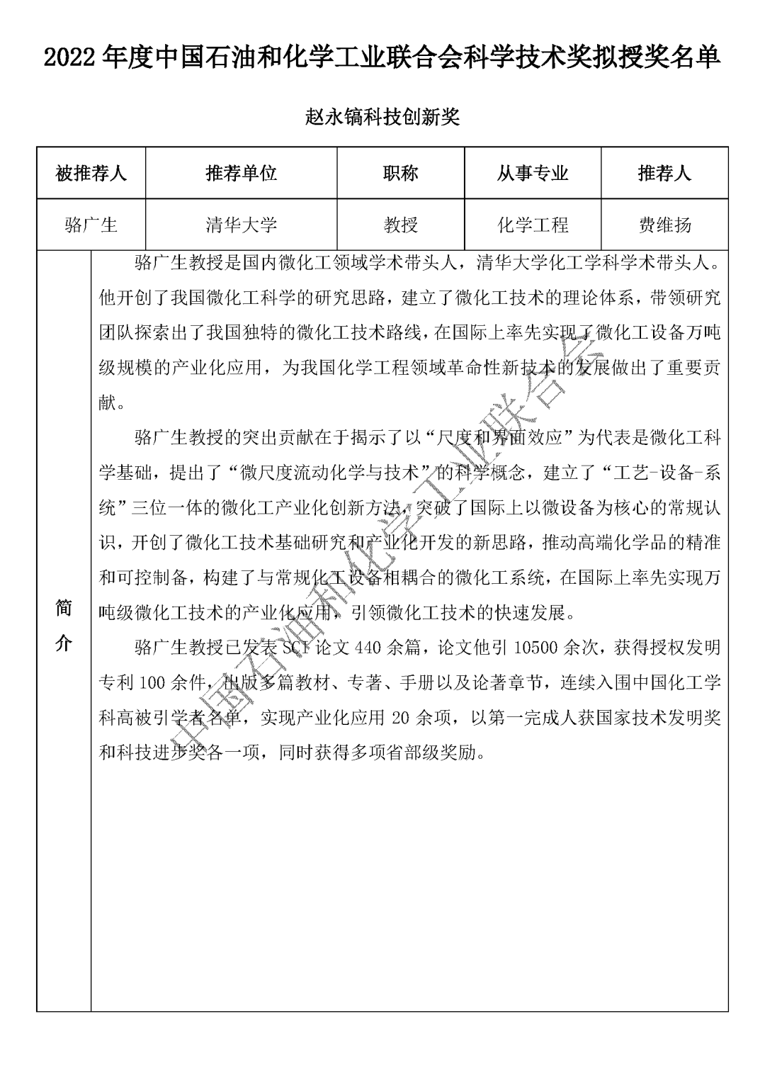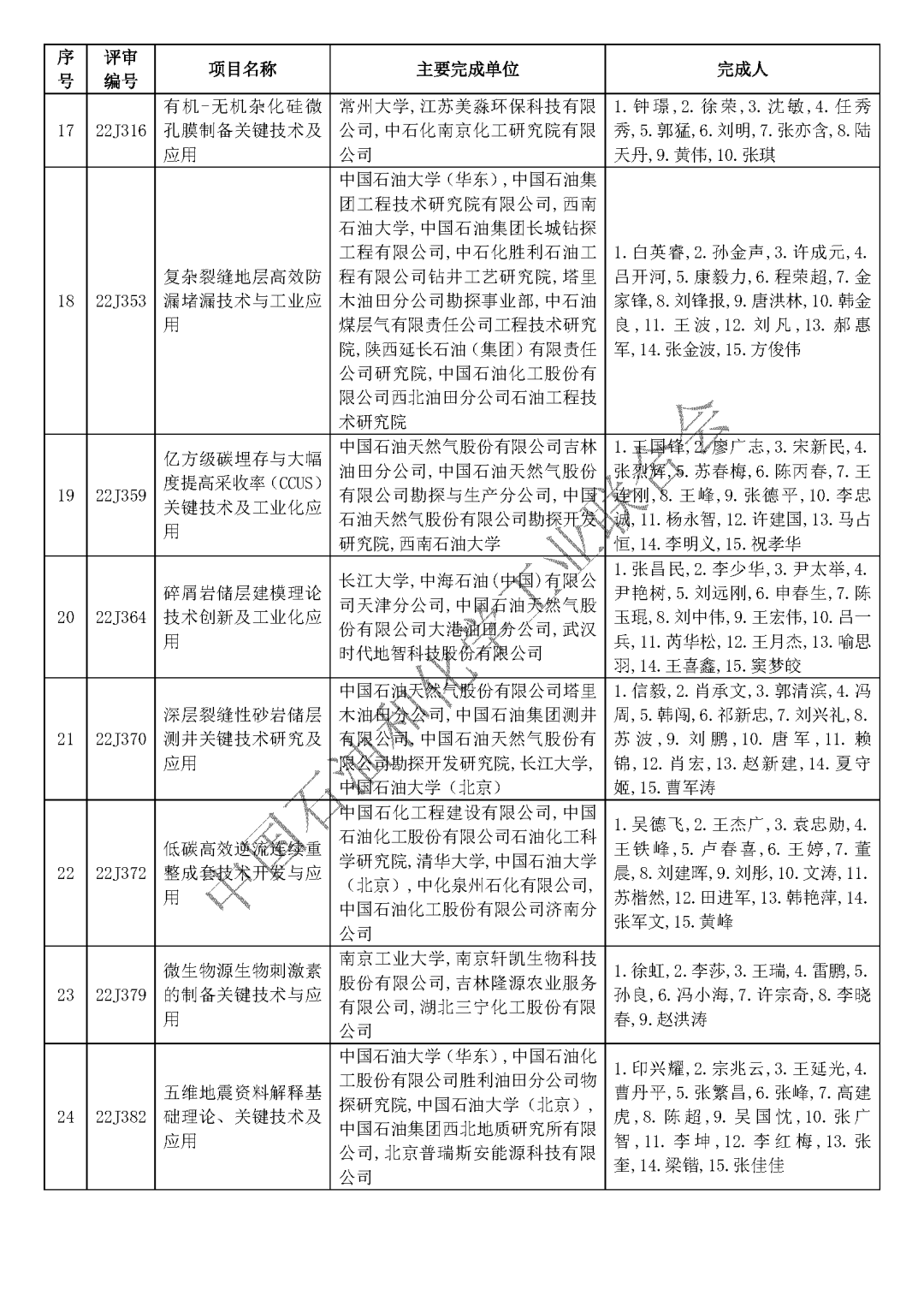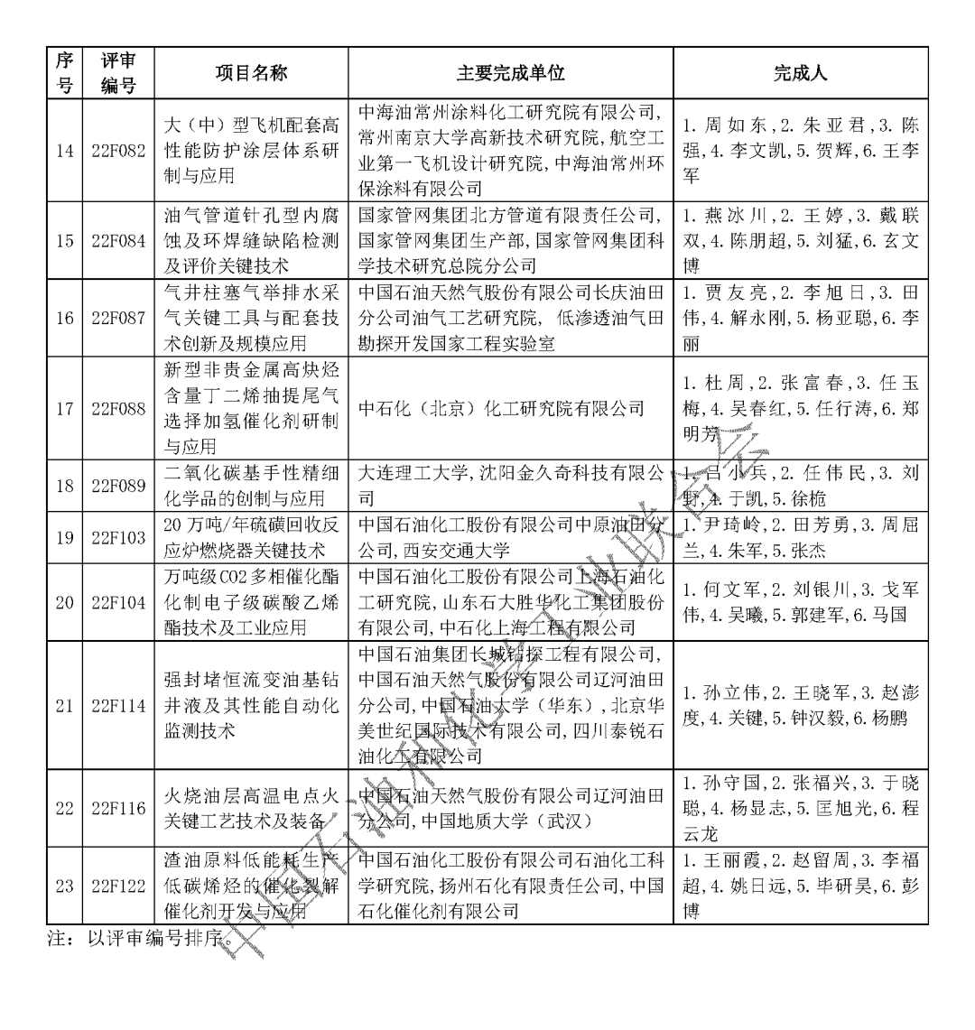 附件:2022年度中国石油和化学工业联合会科学技术奖及行业专利奖拟授奖名单