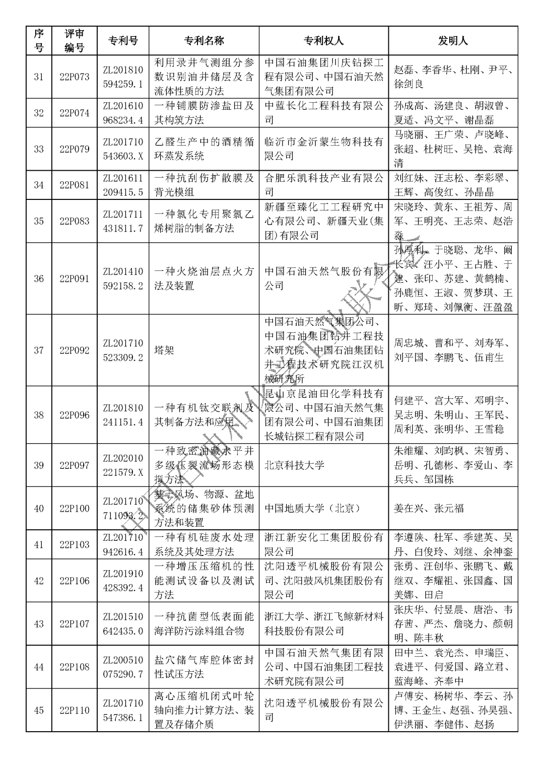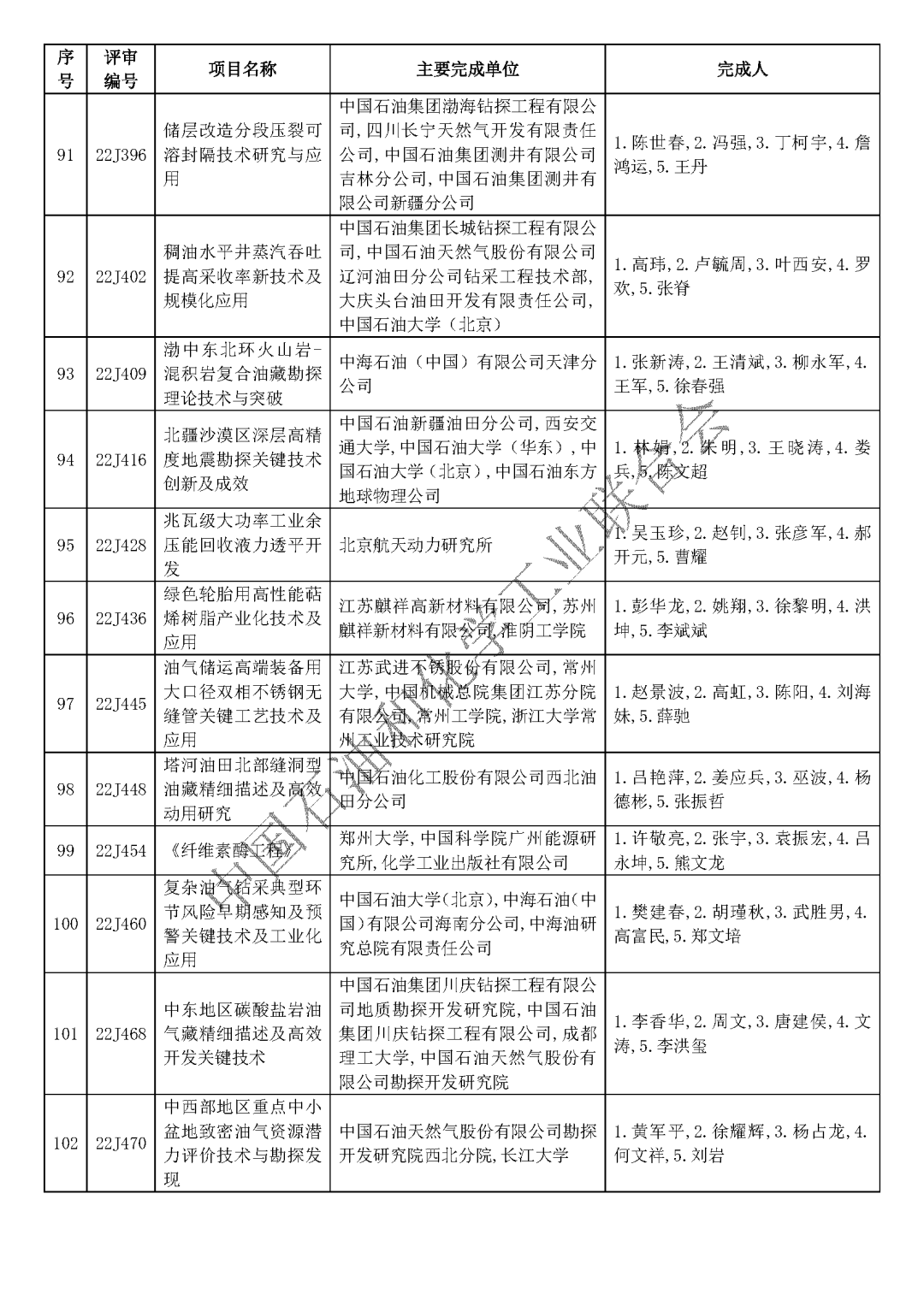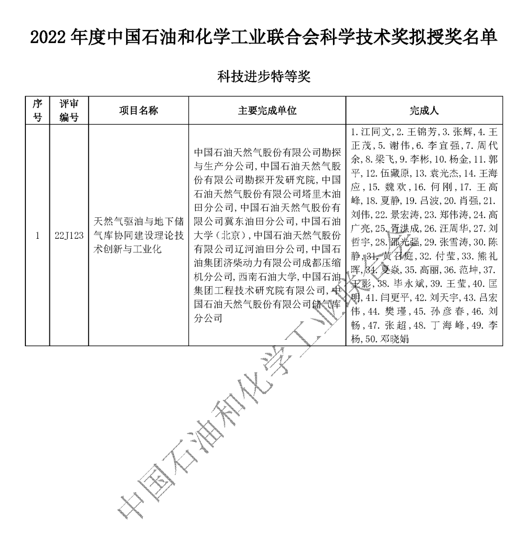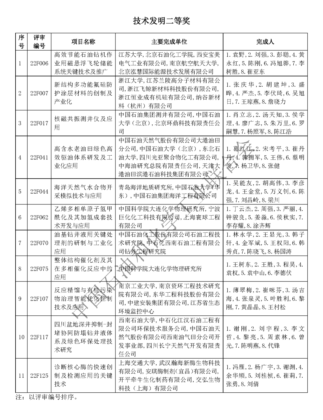 经我联合会组织有关专家评审,评出2022年度中国石油和化学工业联合会科学技术奖:技术发明奖44项(一等奖10项,二等奖11项,三等奖23项);科技进步奖240项(特等奖1项,一等奖38项,二等奖70项,三等奖131项);赵永镐科技创新奖2人;青年科学技术突出贡献奖13人;创新团队奖4个。石油和化工行业专利金奖14项,优秀奖72项。现将获奖项目名称、主要完成单位、主要完成人、专利权人、发明人等有关内容进行公示,向社会公告,以征求意见。自公告之日起,异议期为20天。如有异议,请在2022年12月10日前向联合会科技奖励工作办公室提出书面意见,并写明真实姓名、工作单位、联系地址和电话。
