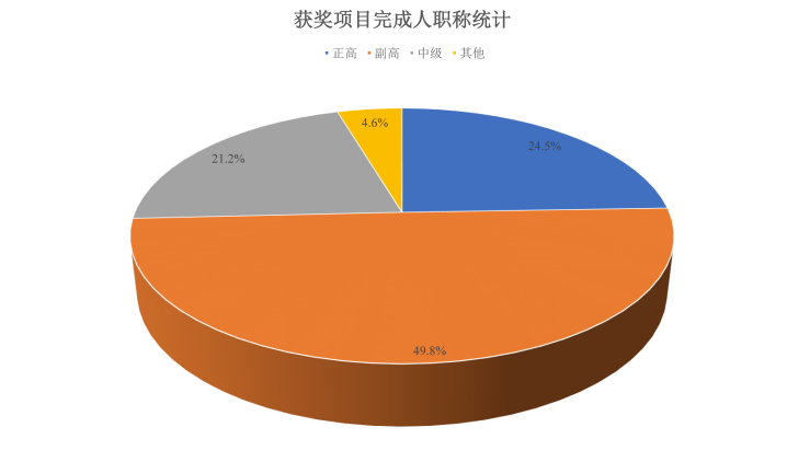 获奖完成人职称统计发现,正高级职称占比为24.5%,副高级职称占比高达49.8%。