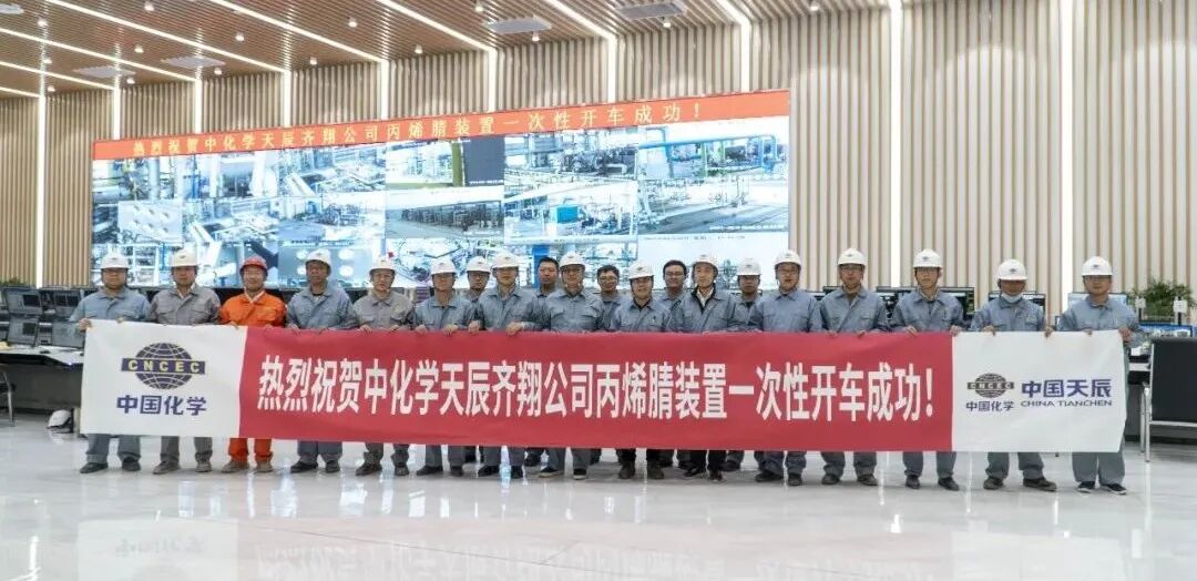 2022年3月22日,中国化学天辰齐翔丙烯腈装置一次性开车成功