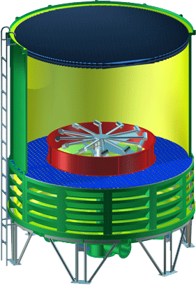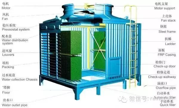 2)空气通过风扇强制诱导,从底部进入冷却塔;使用强制诱导风扇。