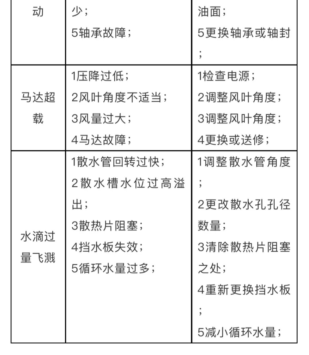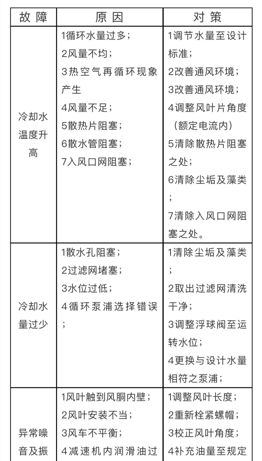 c冷却塔在停机一段时间后重新运转,此时必须检查马达绝缘是否正常?然后再参考操做前准备事项之说明进行操作。