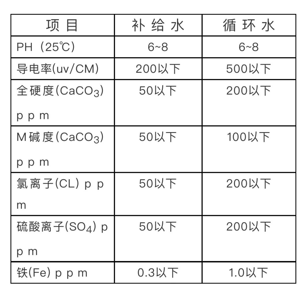 循环水一般每月更换一次,或有污浊之现象则必须更换,更换循环水则依据水中固体浓度来定,同时将热水盘和冷水盘清洗干净,热水盘内如有污物阻塞的话,将影响冷却效率。