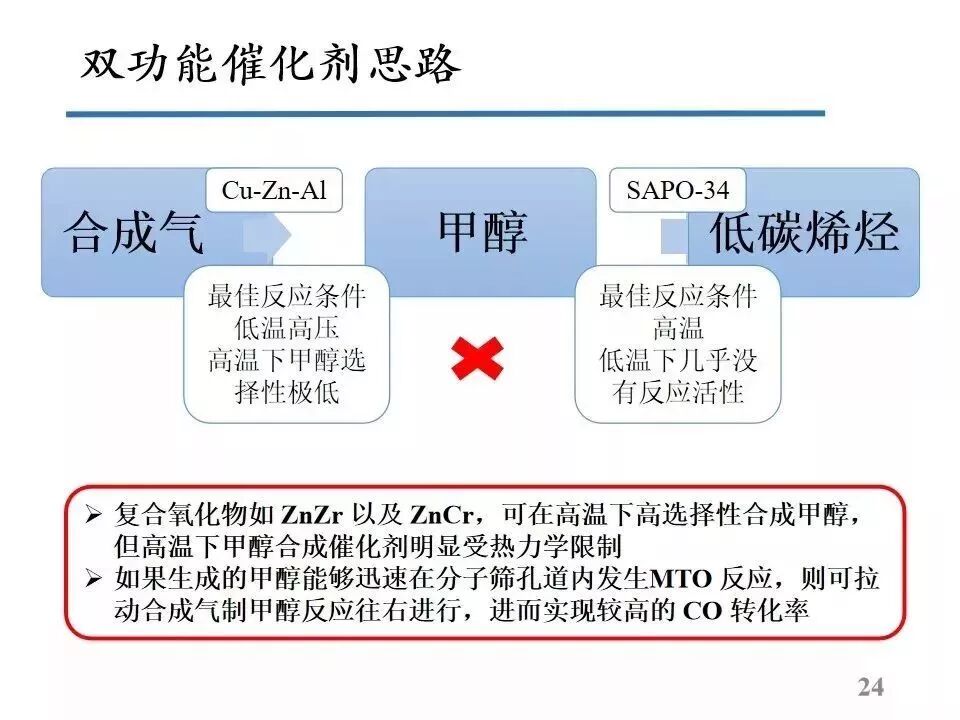 如果能减少反应步骤, 将合成气直接高选择性合成低碳烯烃,将体现出流程更短、能耗更低的优势,有较强的竞争力,未来发展前景更好 。