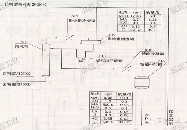 某丙烯酸甲酯装置局部工艺原则流程图