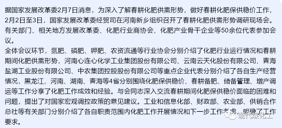 国家发展改革委召开春耕化肥供需形势调研现场会
