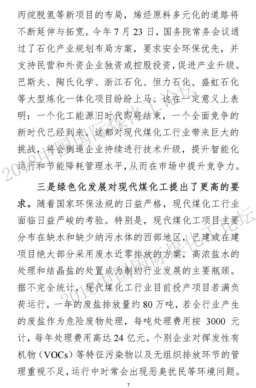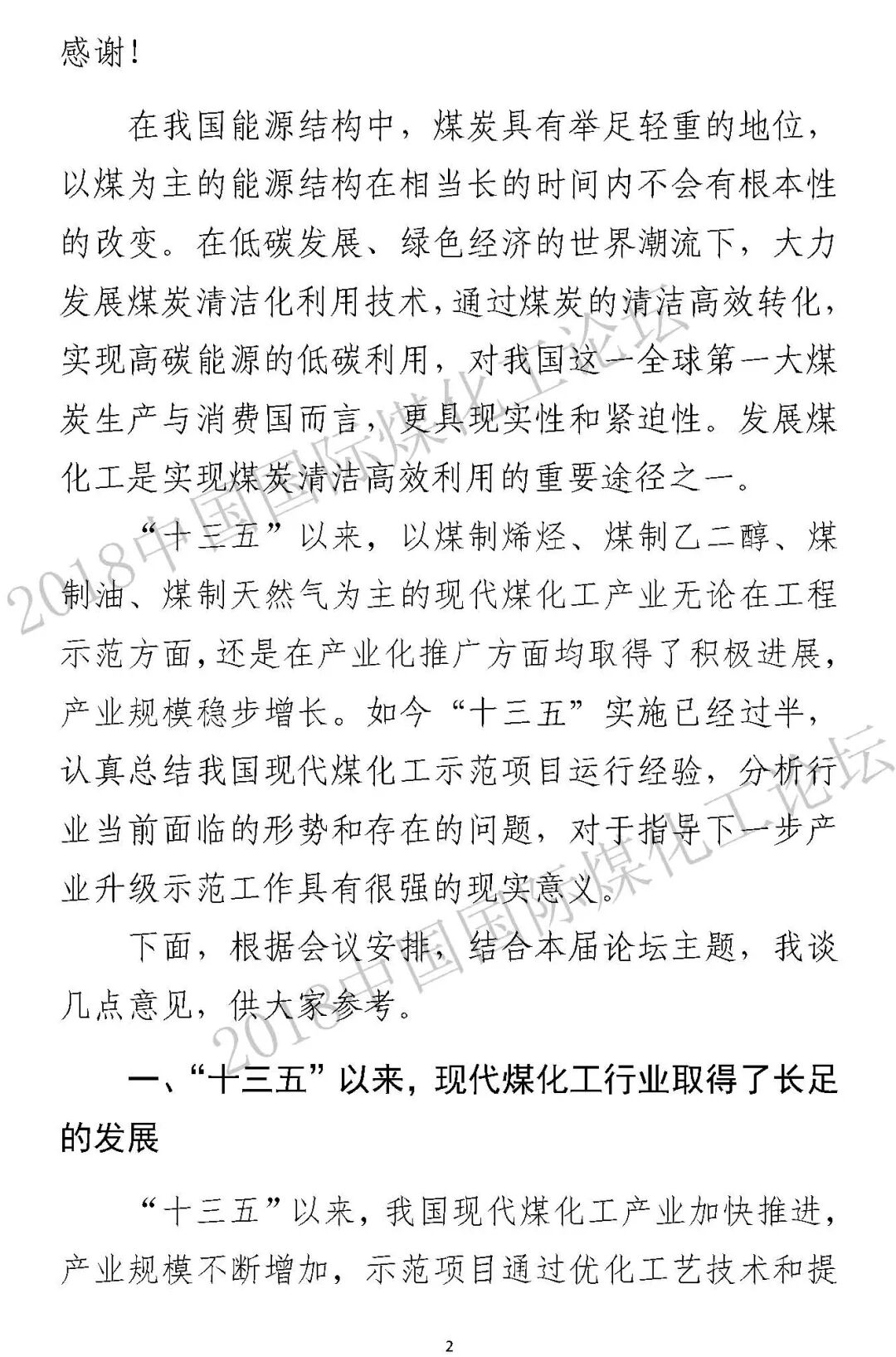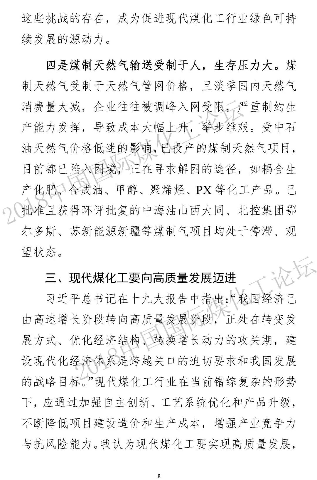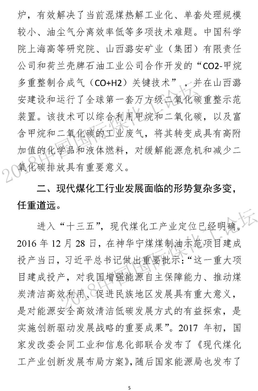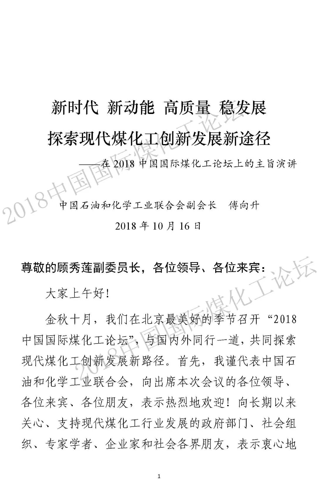 傅向升在“2018中国国际煤化工论坛”上的主旨演讲