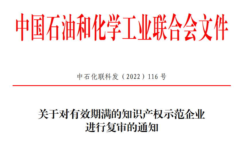 申报截止时间为2022年8月31日,未提出申请复审的企业,视为自动放弃“中国石油和化工行业知识产产权示范企业”称号。
